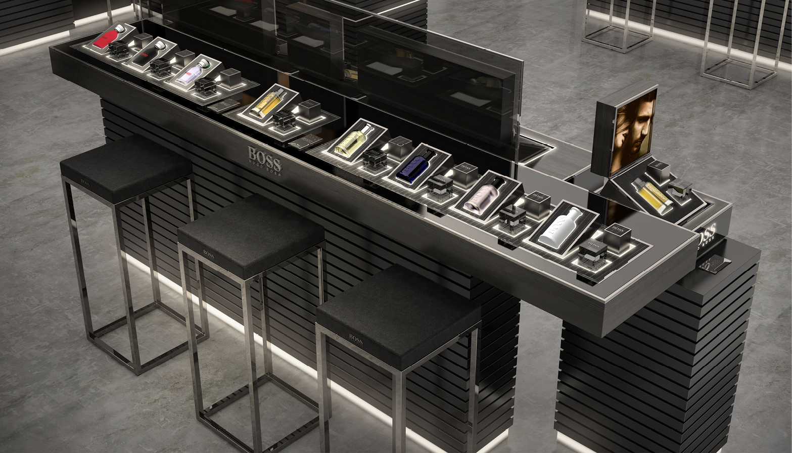 For Hugo Boss, Designed at Aruliden, New York, Industrial Design, Visual Merchandising, Retail Design